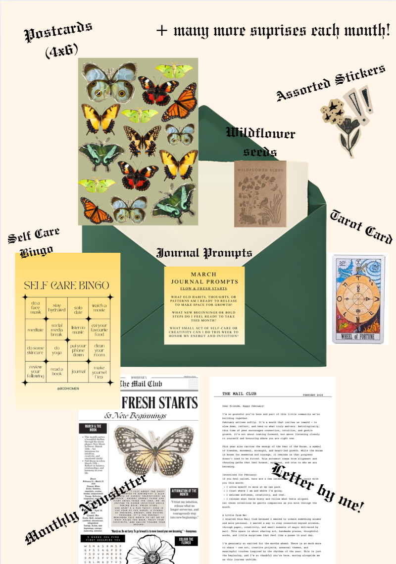 Mail Club is more than a subscription, it’s a ritual of connection. A quiet moment to slow down, open something made just for you, and tend your craft with a sense of wonder. Join the Mail Club and let the magic arrive at your door each month!